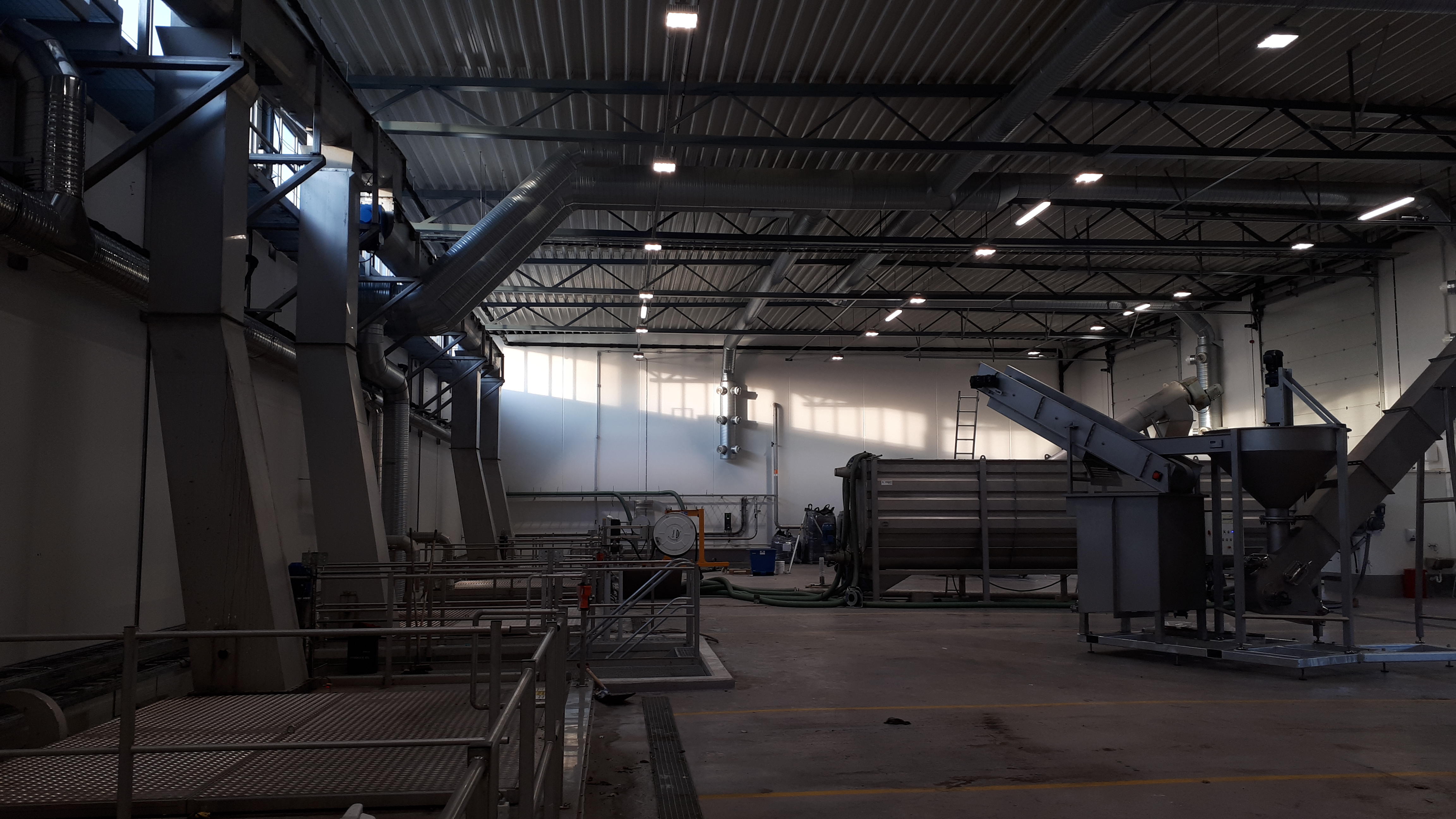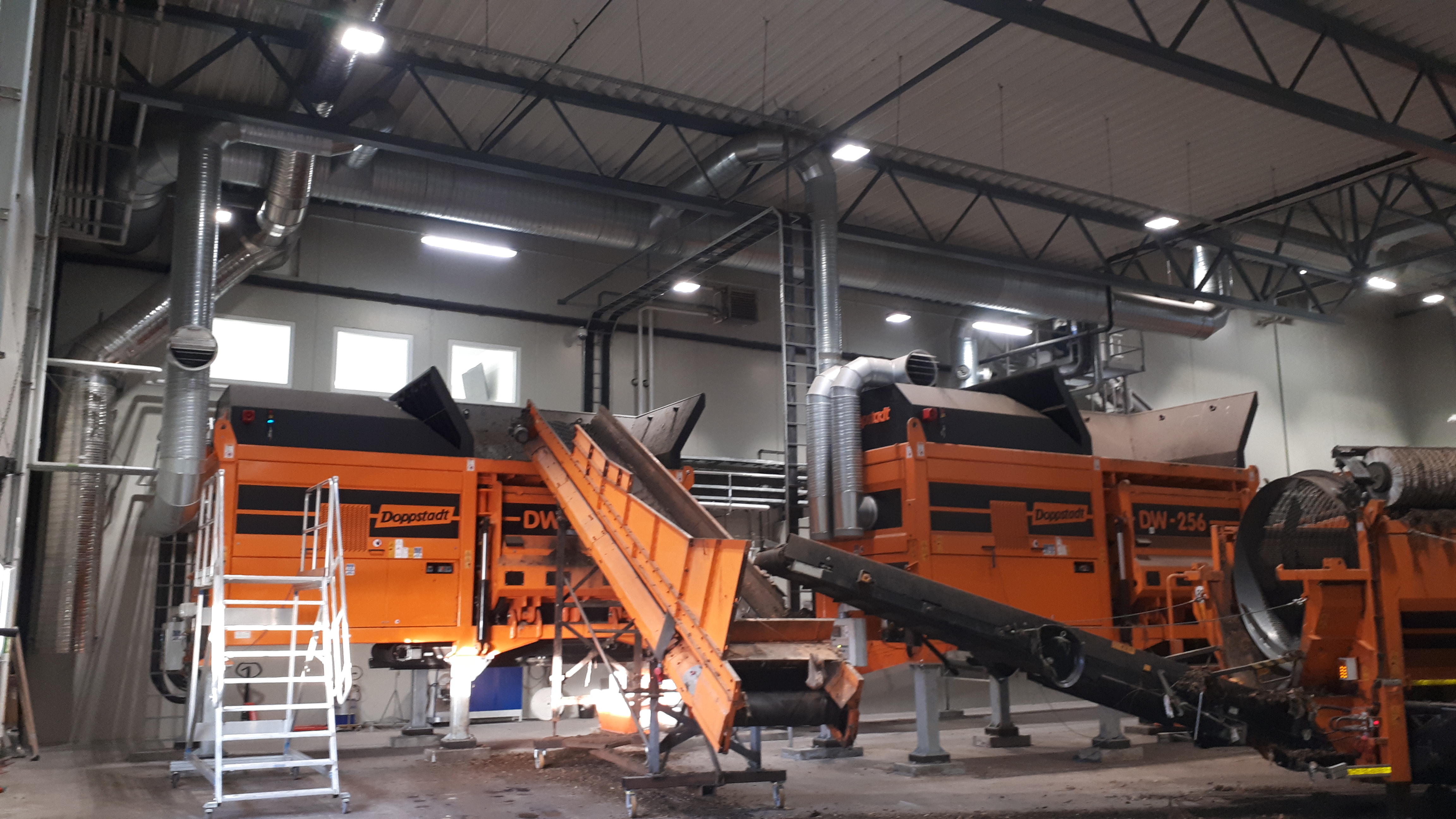 Avfallsanlegg for mottak av organisk avfall. Ventilasjonsanlegget består av både anlegg for prosessanlegget og for almennventilasjonen.